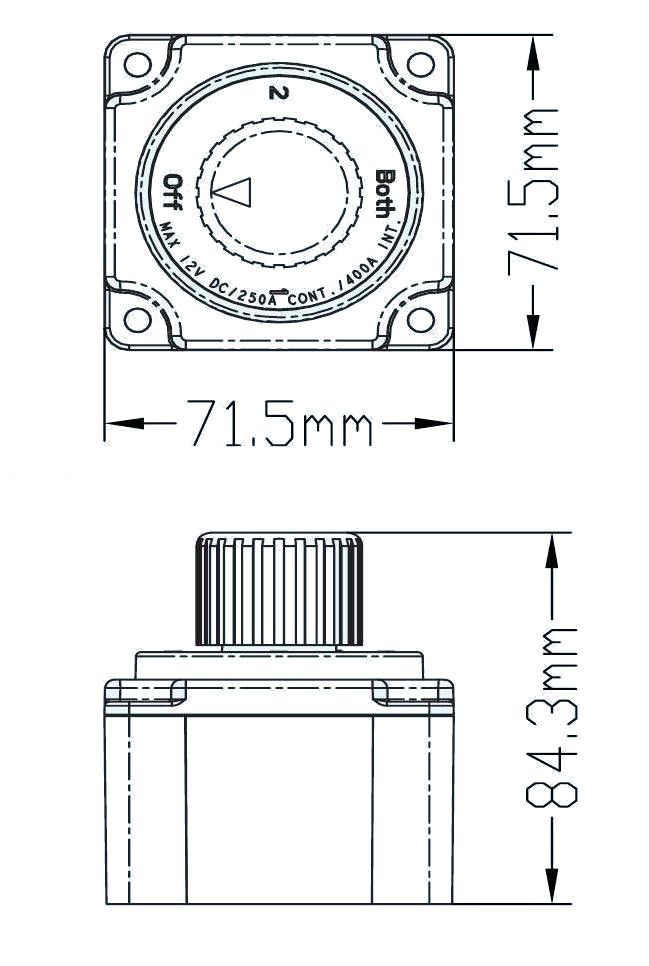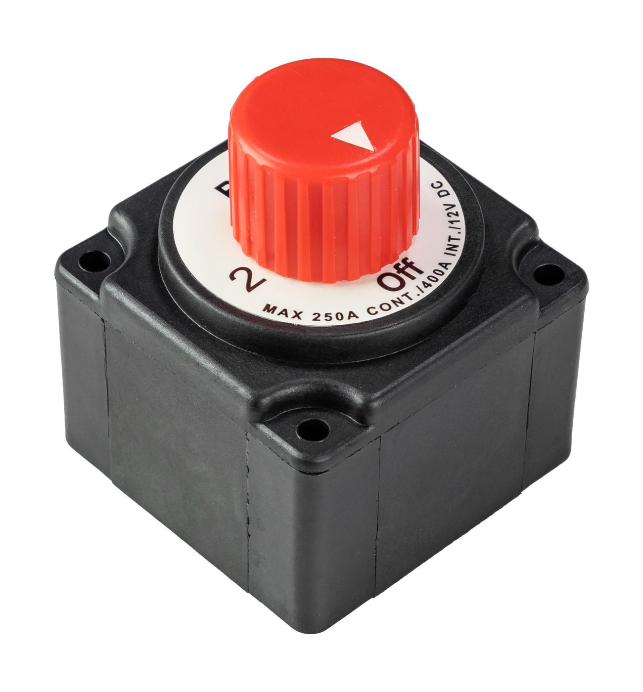 Выключатель массы ААА (Тайвань) для 2-х аккумуляторных батарей 12 / 24 В, OFF-1-BOTH-2 (2 АКБ) 250А (механический поворотный размыкатель ключ массы аккумулятора)