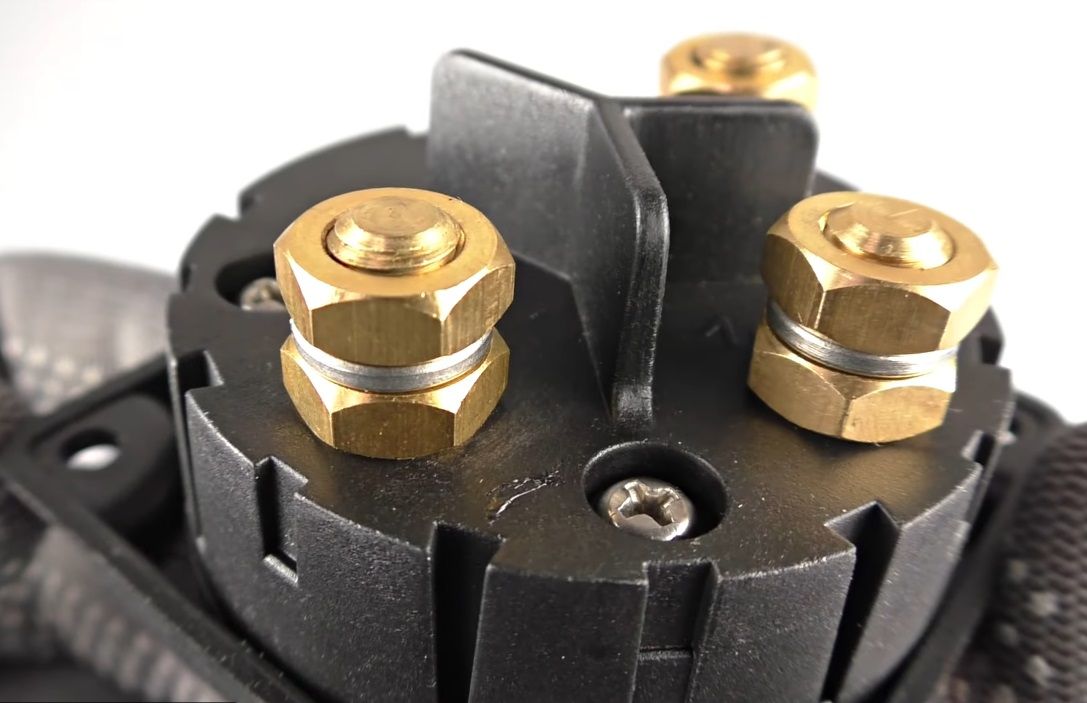 Внутри корпуса находится переключатель – сердечник оригинальной формы, который поворачивается относительно медных пластин. Контактная часть смазана для лучшей работы переключателя, а все болты и гайки для крепления проводки – медные.