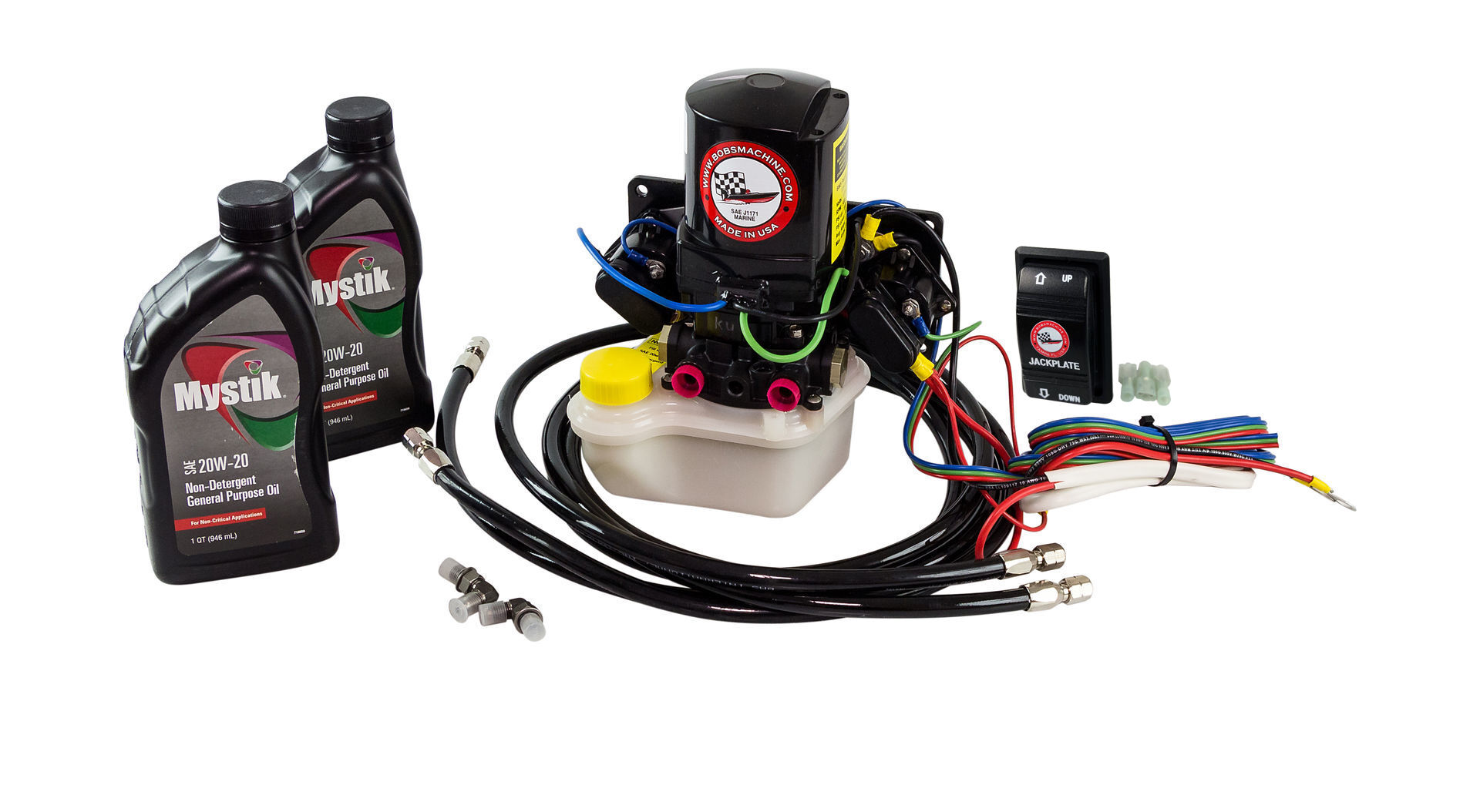 - Гидравлическая система с внешним насосом: в комплекте идёт отдельный насос, который устанавливается в сухом месте лодки. Система обеспечивает плавный и контролируемый подъём/опускание мотора без усилий со стороны пользователя.
