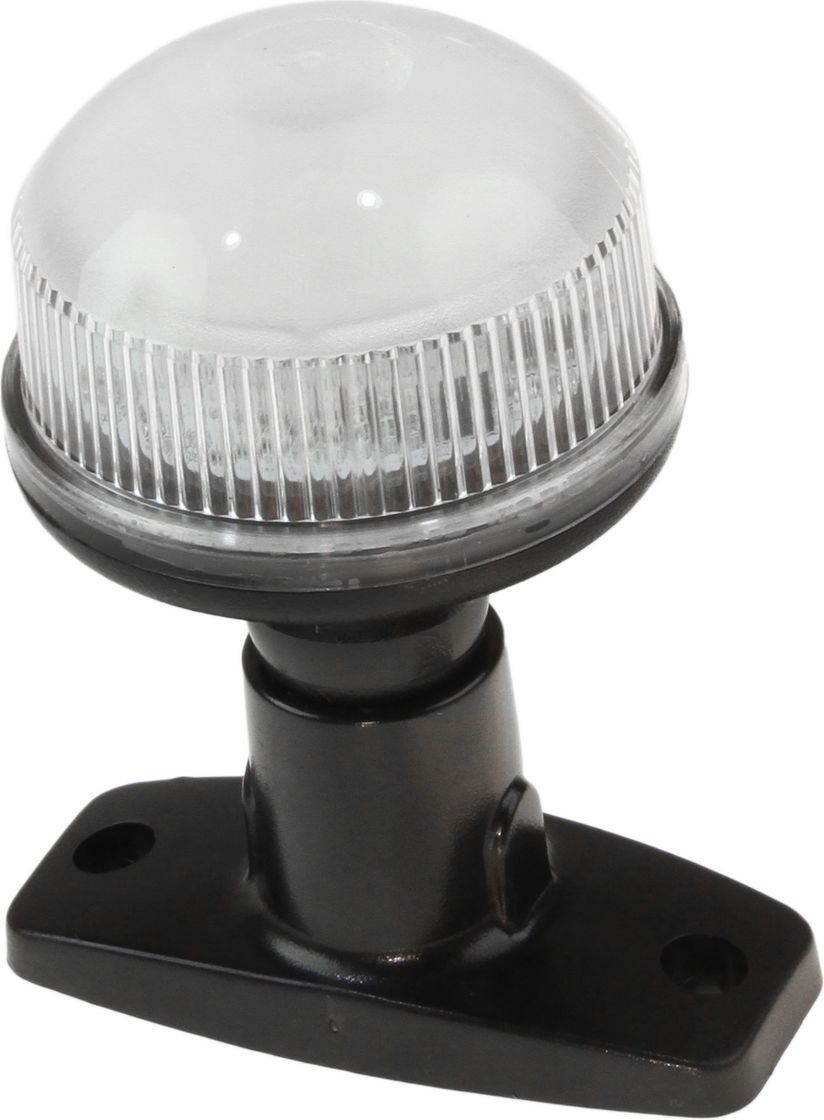 Стояночный огонь установлен на алюминиевой стойке высотой 110 мм. Источник света расположен в плафоне-рассеивателе из прозрачного полимера. Плафон легко откручивается для замены лампы. Универсальный фонарь рассчитан на питание 12/24 В.