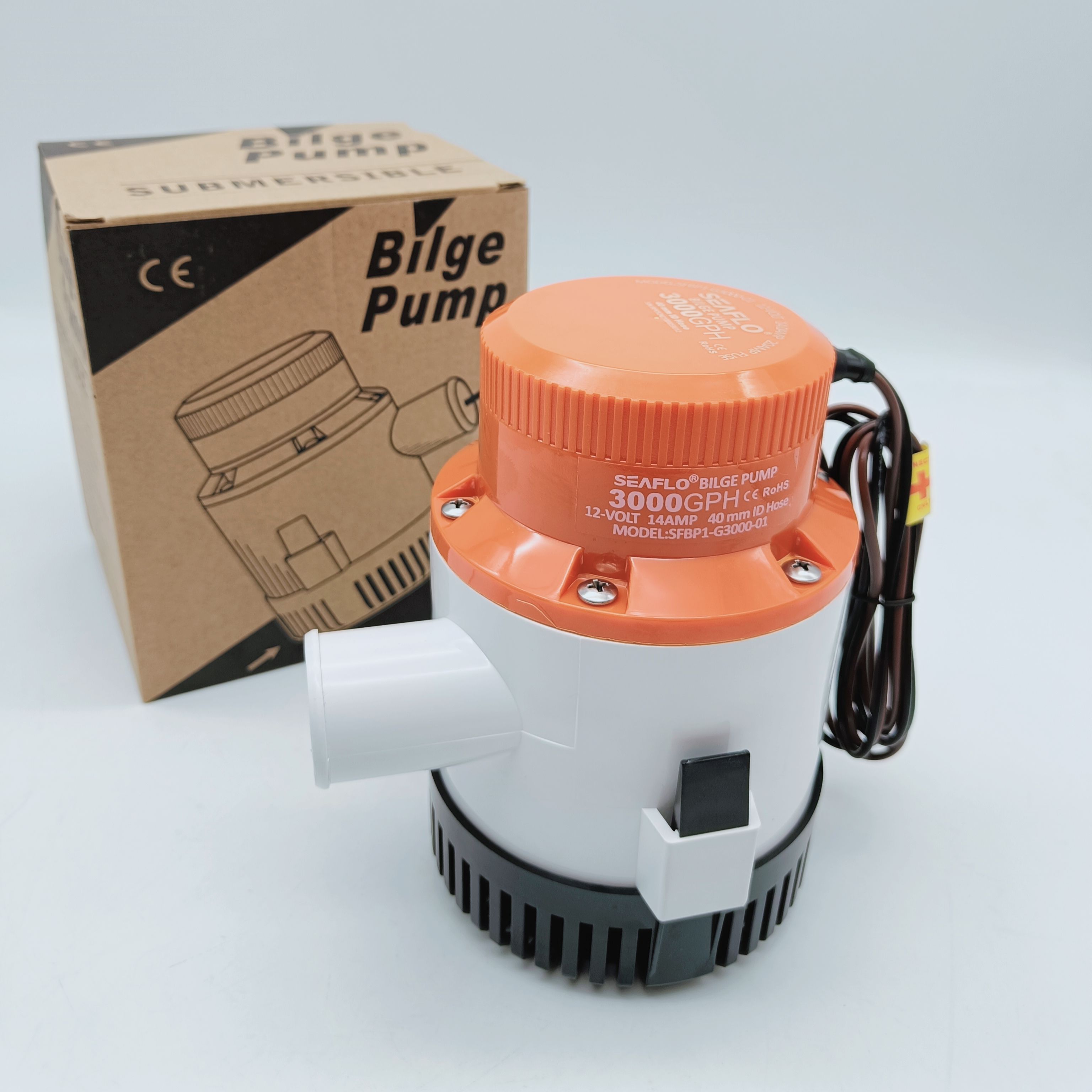 Осушительная помпа SeaFlo 12 вольт, 3000GPH (11355 л/час, высота 5 м), для лодки (насос 12 В осушительный для откачки воды на судне / помпа водооткачивающая трюмная)