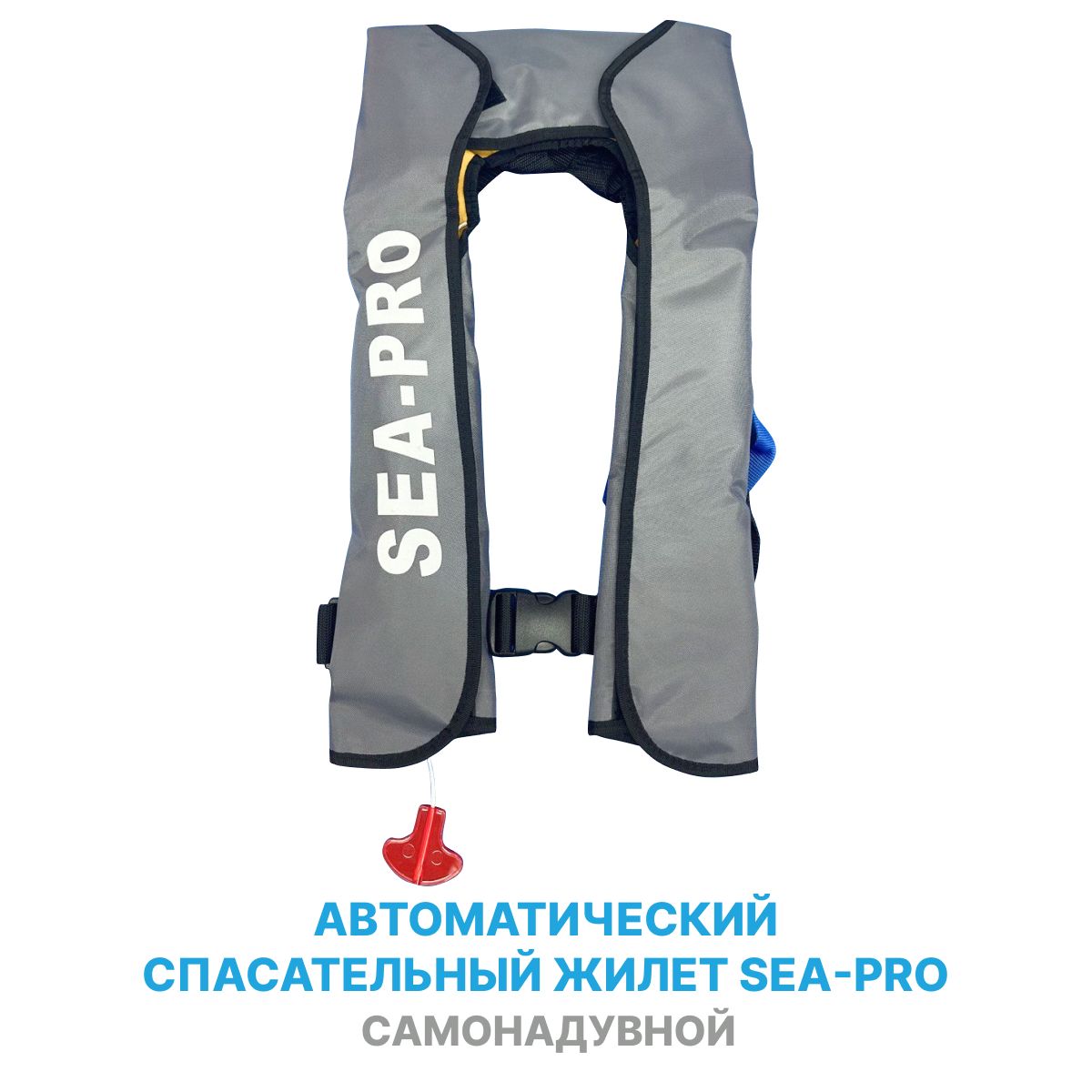Автоматический спасательный жилет Sea-Pro само надувной цв. серый для лодки, рыбалки, сапа, воды