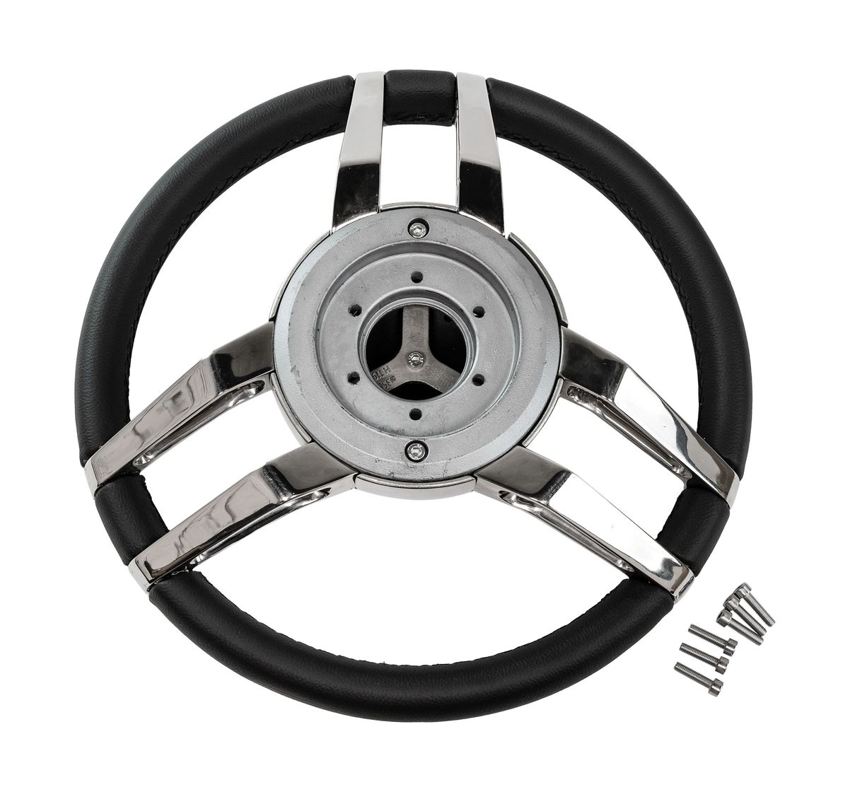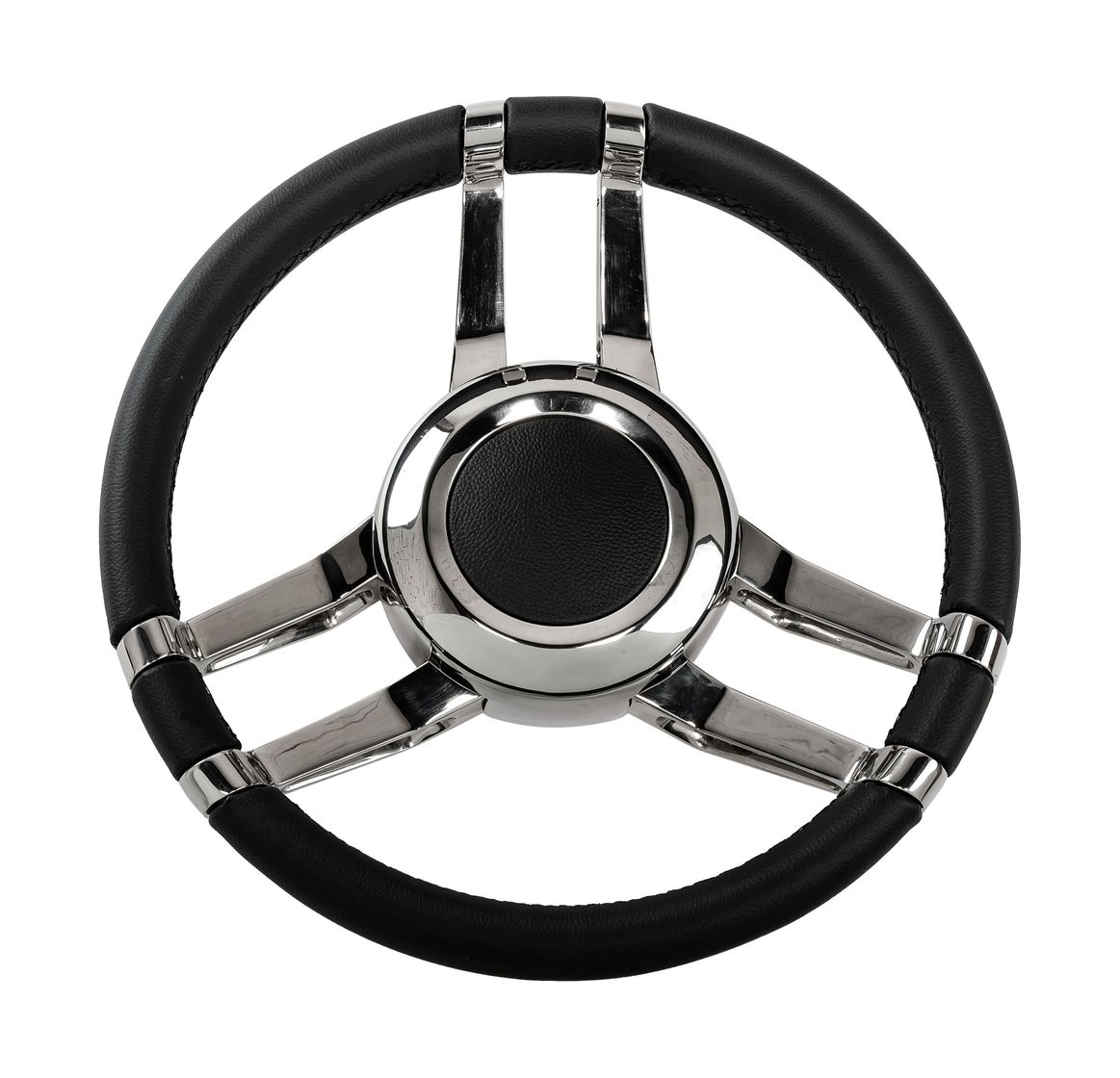 - Блеск и долговечность нержавеющей стали: трёхспицевая конструкция и центральный фланец выполнены из полированной нержавеющей стали (AISI 304). Такое покрытие не просто ослепительно блестит на солнце — оно обладает максимальной коррозионной стойкостью в агрессивной морской среде, сохраняя безупречный вид на долгие годы.