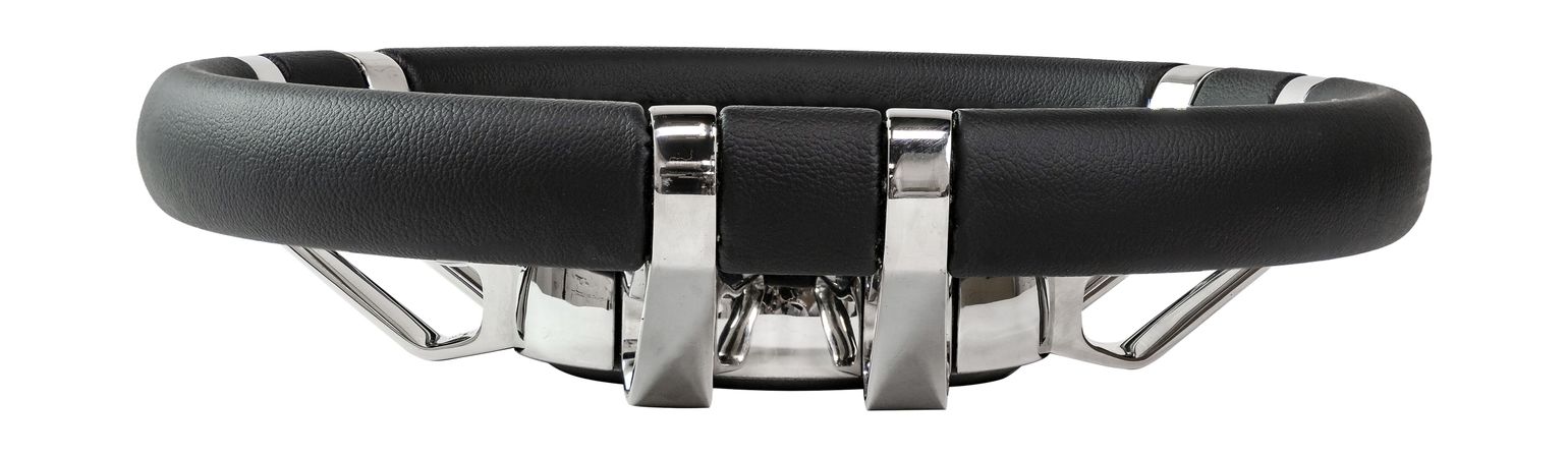 - Роскошь натуральной кожи: обод колеса обшит высококачественной натуральной кожей. Это обеспечивает не только эксклюзивный внешний вид, но и исключительно комфортный, «тёплый» хват, который не скользит в руке даже во влажных условиях и делает управление приятным на протяжении многих часов.